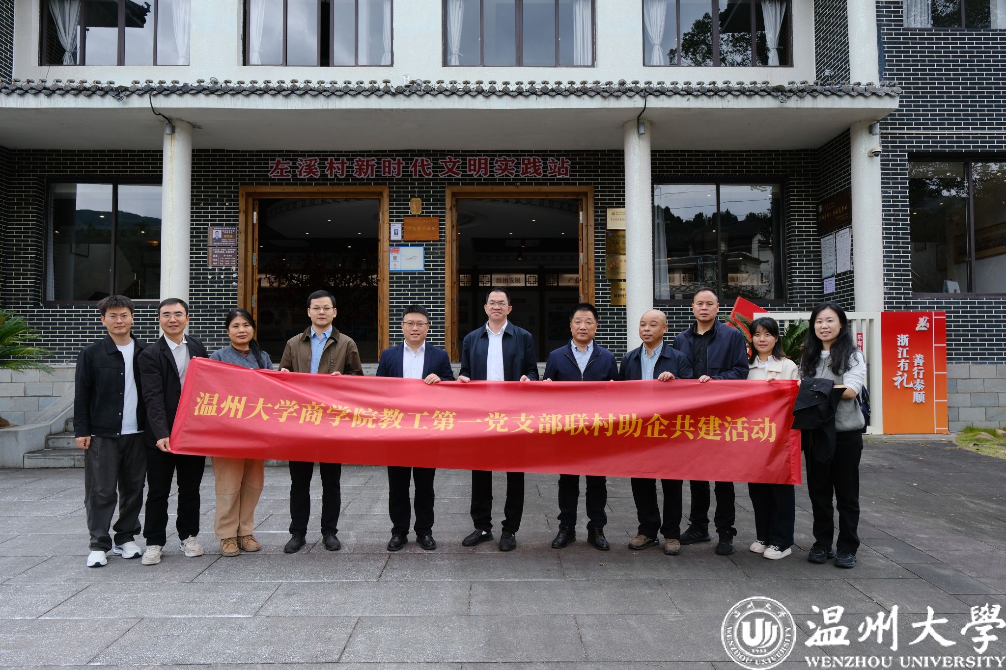 教工第一党支部组织党员赴泰顺司前畲族镇左溪村,开展以“党建+文化+产业”为核心的联村助企共建活动,精准对接乡村发展需求,以商科智慧赋能乡村振兴。