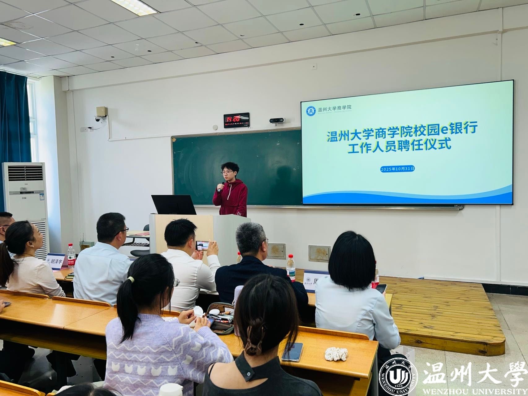 校园e银行新一届工作人员聘任仪式在北校区2-401教室举行。此次仪式融入2025级金融工程专业导论课堂,以“实践育人”为核心,生动展现了学院“银校共建”党建品牌的深化成果。