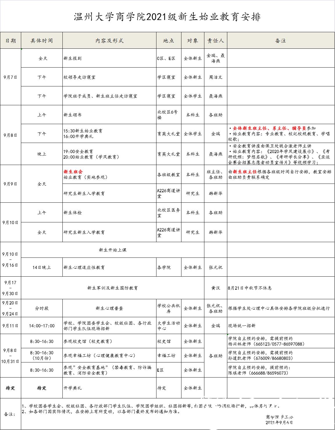2021级新生始业教育安排