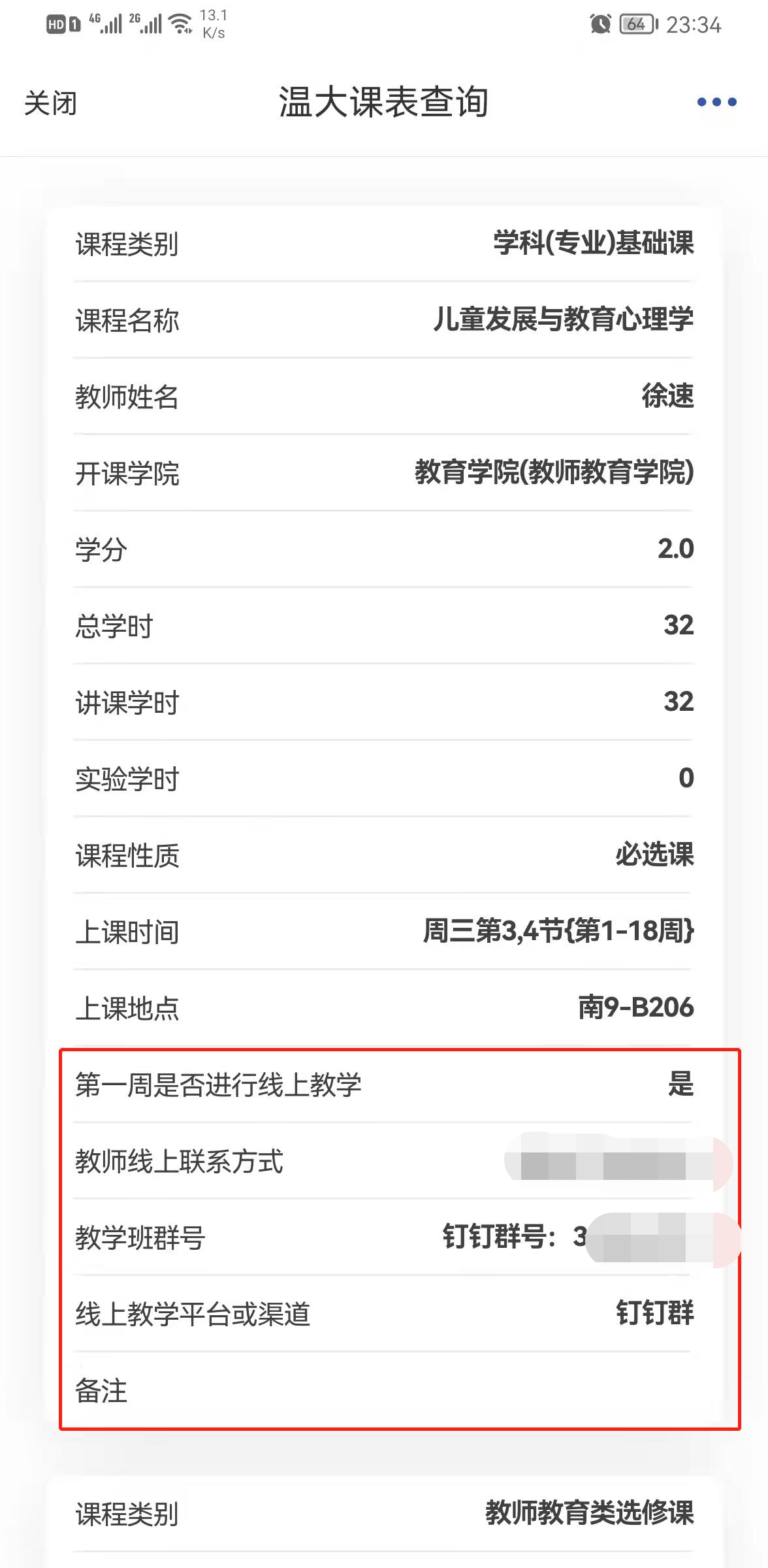 为确保大家能够及时、准确的获知第一周线上课程的上课方式,学校推出我的温大APP掌上服务“线上课程查询”功能,轻松查询到自己所选课程的教师联系方式、线上开课信息、教学平台或学习工具、线上教学专用群号码等信息,快来查看并加入线上课程专用交流群吧!